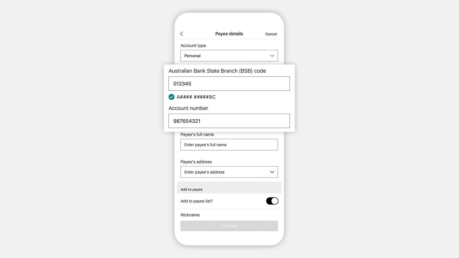 Enter a nickname if you want to save this payee as a favourite payee.