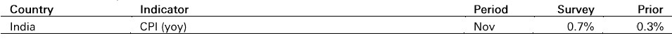In India, headline CPI inflation likely picked up from October’s low but stayed subdued at 0.7% yoy in November.