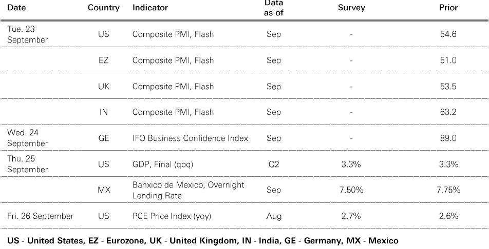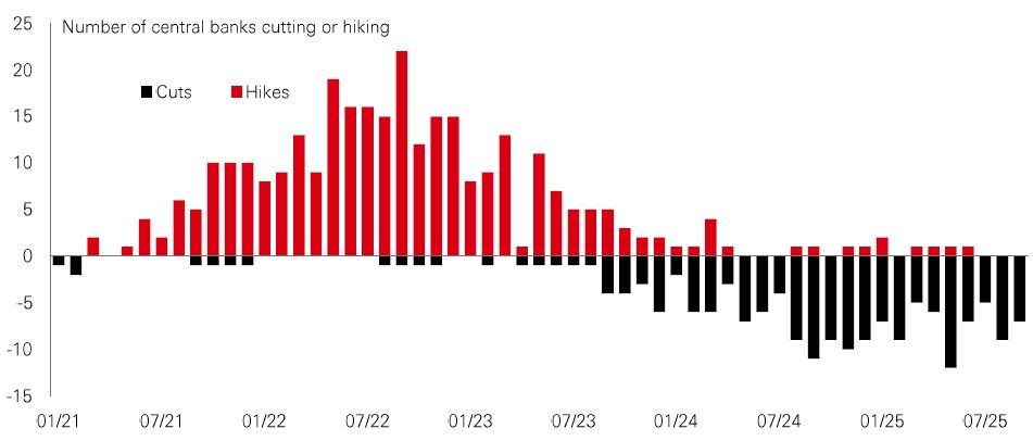 The value of investments and any income from them can go down as well as up and investors may not get back the amount originally invested. Past performance does not predict future returns. The level of yield is not guaranteed and may rise or fall in the future. For informational purposes only and should not be construed as a recommendation to invest in the specific country, product, strategy, sector, or security. Diversification does not ensure a profit or protect against loss. Any views expressed were held at the time of preparation and are subject to change without notice. Any forecast, projection or target where provided is indicative only and is not guaranteed in any way. Source: HSBC Asset Management, Bloomberg, Macrobond. Data as at 7.30am UK time 19 September 2025.