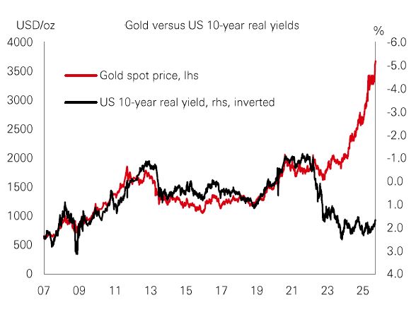 • Gold has risen by nearly 40% to USD 3,700 an ounce this year, making it one of the best performing asset classes globally.