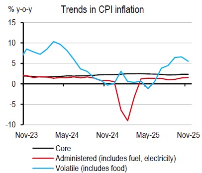Amid all the uncertainty in politics and policy, growth disappointed in the third quarter of 2025, falling by 0.6% q-o-q seasonally adjusted. Services exports continued to contract with the tourism sector still finding its feet after its stumble earlier in the year. Meanwhile, passing the baton from one Prime Minister to another was a two-month process, which eventually led to fiscal standstill. Government spending fell, dragging growth down by as much 1.1ppt.