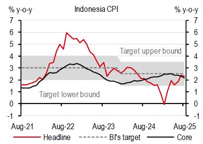 Against this macro backdrop, street protests in Indonesia intensified towards the end of August, which, we believe, resulted in a slew of policy changes. There was a cabinet reshuffle, including the appointment of a new finance minister. The government planned to transfer part of its cash balances held with Bank Indonesia (BI) to state lenders to boost lending. It revised up its 2026 fiscal deficit target, announced new social welfare schemes for 4Q25, and reintroduced its burden sharing programme for a specific government project. Some other developments we will be watching over the next few weeks include discussions around any changes in the budget deficit cap, and the BI’s mandate.