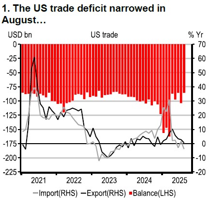 Some lagging US data have already been released, including August trade data, which showed a smaller US trade deficit. This was likely reflecting some payback following earlier frontloading trends. Tariff uncertainty prevails though, as sector tariffs could change, and we await a Supreme Court ruling on the International Emergency Economics Powers Act (IEEPA) tariffs. Yet some tariffs are falling too, given the recent détente between the US and China, and, following signs that tariffs are raising consumer prices, several agricultural products have been excluded from scope.